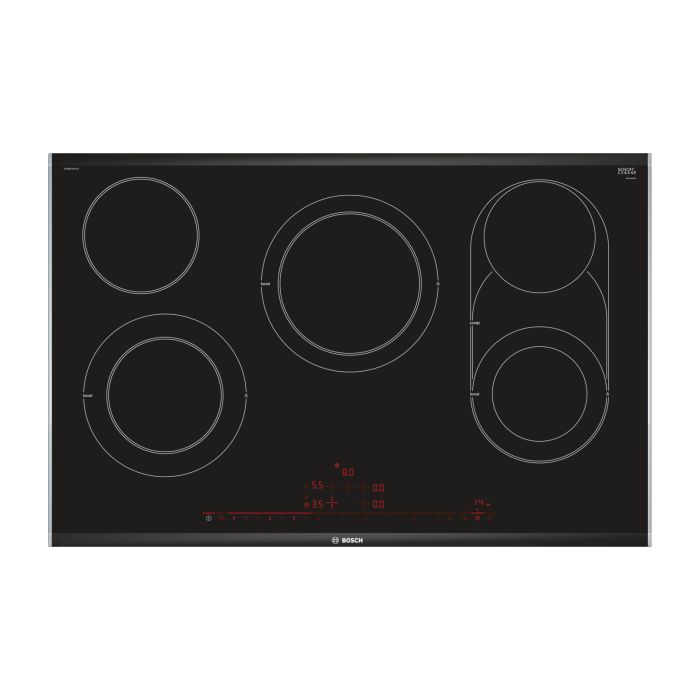 BOSCH Staklokeramička ploča PKM875DP1D Serie 8|; 80 cm; Direct Select-Premium; Bez okvira brušeni rub ukrasna letvica sa strane; 5 HighSpeed polja za kuhanje; Ring zone double, CombiZone; DE