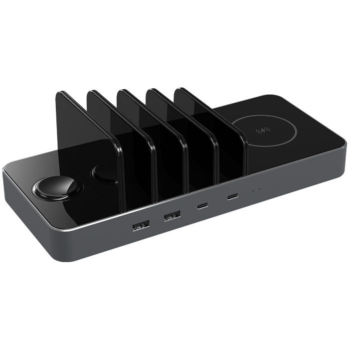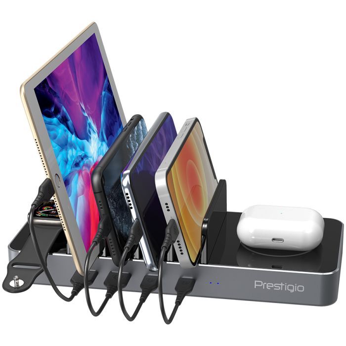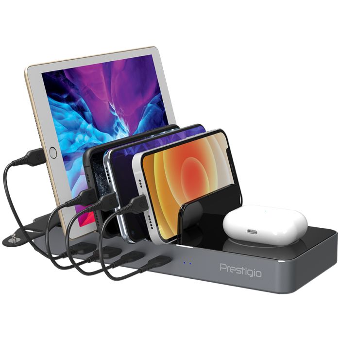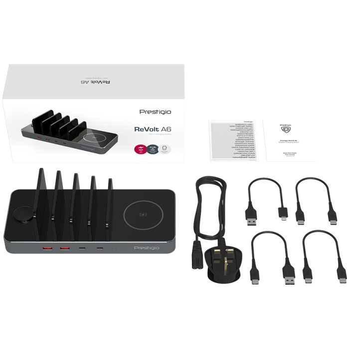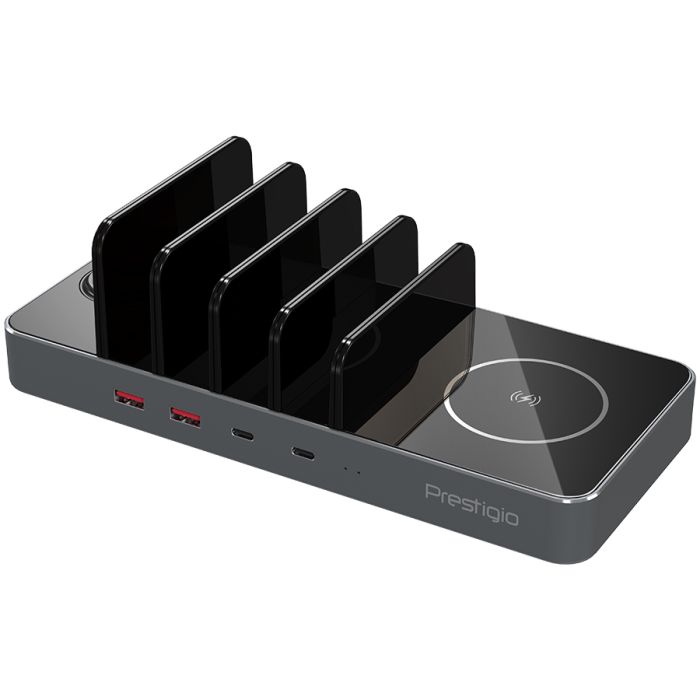 Prestigio ReVolt A6, 6-in-1 charger 2 wireless interfaces: for all gadgets that support Qi wireless charging standard 5W/7.5W/10
