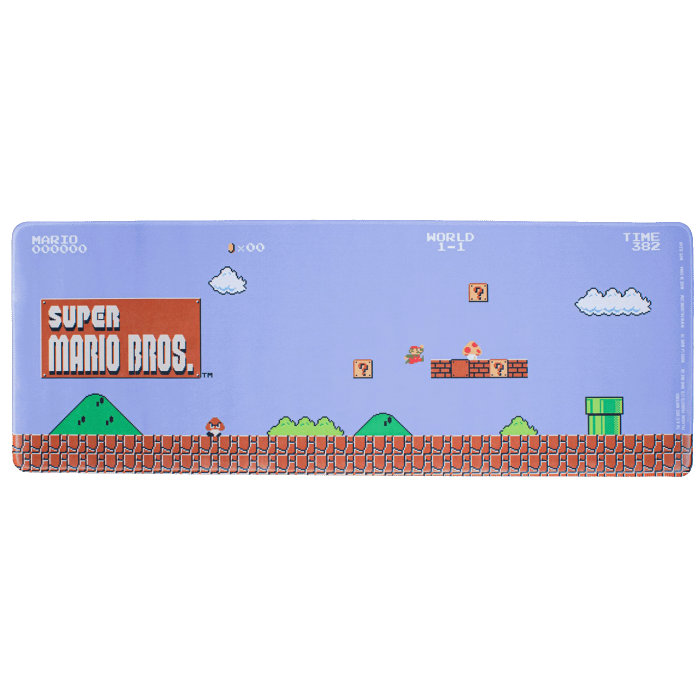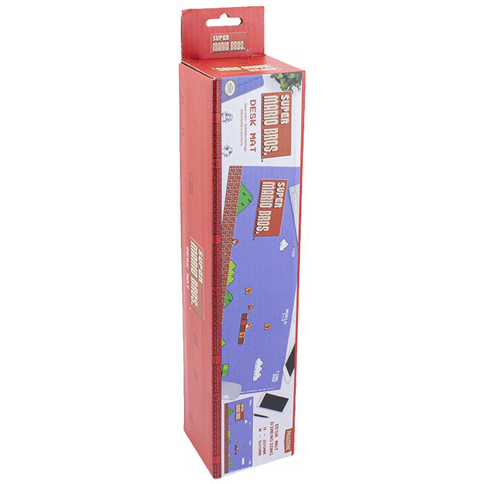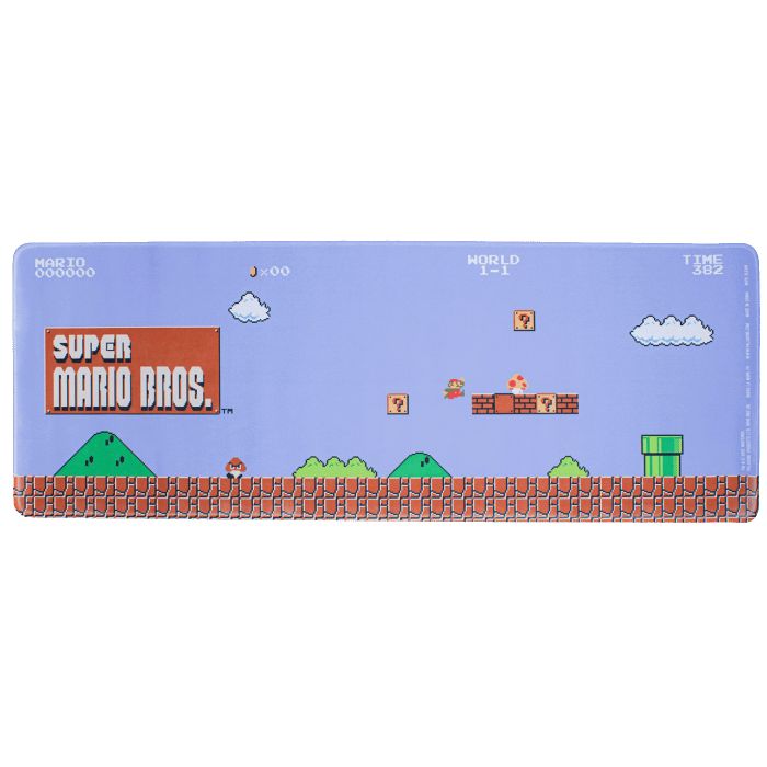 Mario se odvažno probija kroz Kraljevstvo gljiva u dizajnu ove podloge za miš koja će podići stil vaše kancelarije, stola ili radnog prostora. Dimenzija 30 x 80 cm (12" x 31"), Super Mario Bros Desk Mat je ilustrovan šarenom pozadinom World 1-1, tako da možete da se osećate kao da igrate nivo pomijeranja sa strane tokom cijelog radnog vremena!