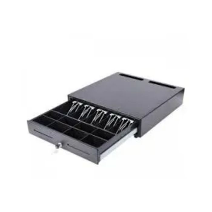 Ladica za novac MS 410, 4 novčanice/ 8 kovanice, Epson standard RjJ11 ,RJ12, 410(Š)x420(D)x100(V), metalna konstrukcija, 7,6kg, 6V/9 V/12/24Vcrna