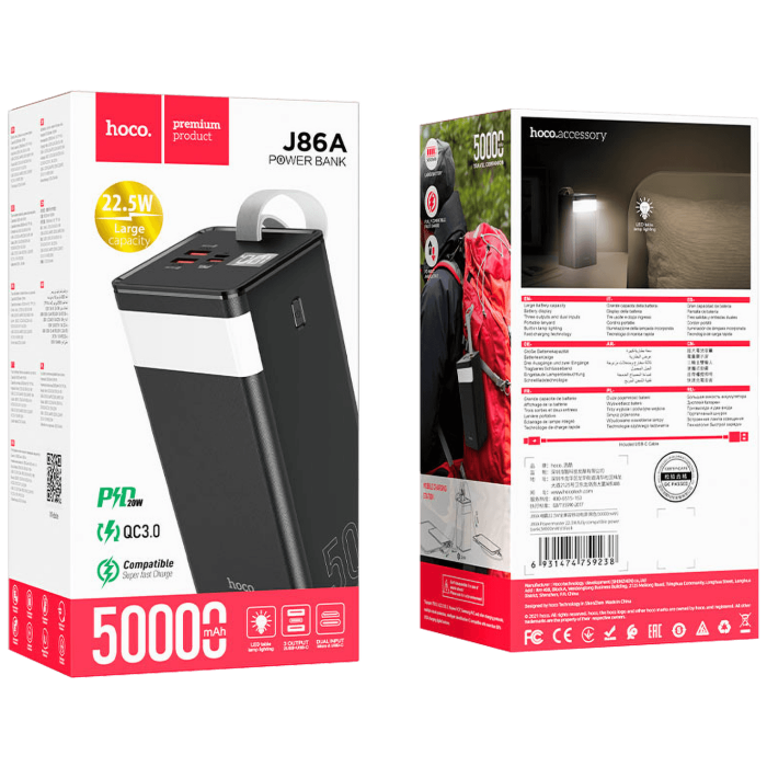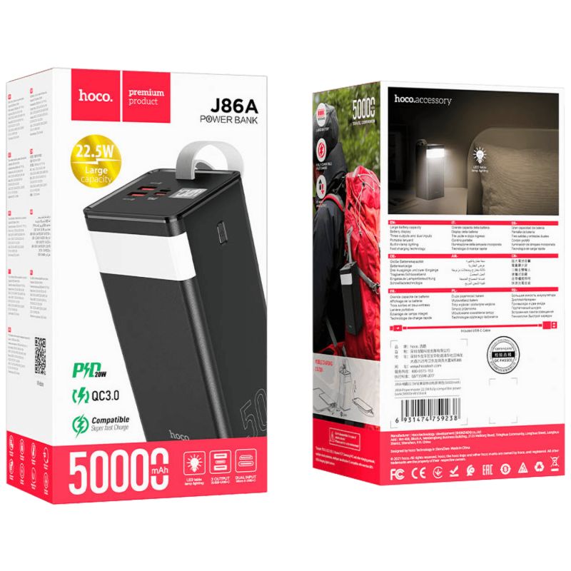 hoco. Punjač prijenosni sa lampom, 50000mAh, brzi QC/PD, 3A - J86A Powermaster