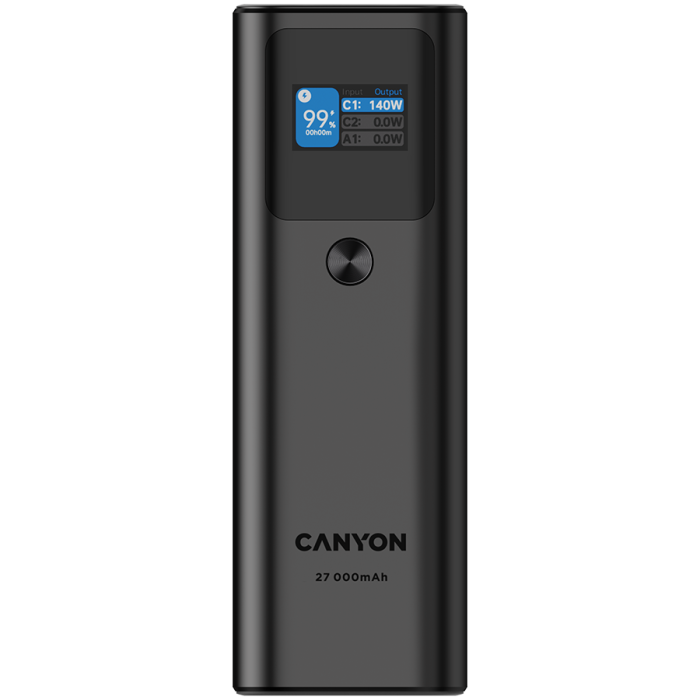 CANYON power bank PB-2010 TFT 27000 mAh 97.2Wh PD140W QC 3.0 Dark Grey