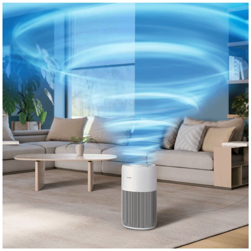 Philips PureProtect Quiet 2200 Series AC2220/10 je pametni pročišćivač zraka dizajniran da pruži čisti, zdrav zrak u većim prostorijama do 109 m² uz vrlo tihi rad zahvaljujući SilentWings tehnologiji ventilatora. Uz snažnu filtraciju od 420 m³/h (CADR) uklanja do 99,97 % ultrafinih čestica veličine čak do 0,003 mikrona, uključujući alergene, prašinu, pelud, grinje i dim. Ugrađena trostruka filtracija uključuje predfilter, HEPA NanoProtect i filter s aktivnim ugljenom za uklanjanje čestica, plinova i neugodnih mirisa. Pročišćivač koristi AeraSense senzor koji više puta u sekundi očitava kvalitet zraka i automatski prilagođava rad najprikladnijem nivou, a može se kontrolirati i putem Philips Air+ aplikacije s podrškom za glasovne asistente poput Google i Alexa. Tu su i korisni načini rada kao što su Auto+, Sleep mode, noćno svjetlo i planiranje čišćenja zraka.