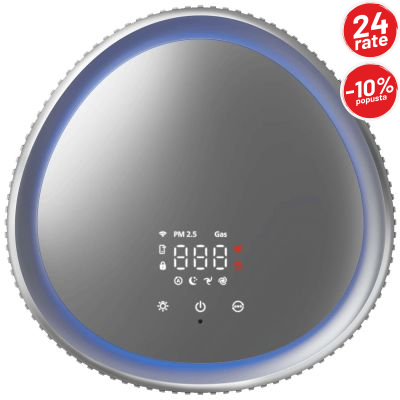 Ugrađeni pametni senzori kontinuirano analiziraju kvalitet zraka u realnom vremenu i automatski prilagođavaju snagu rada. Digitalni ekran jasno prikazuje stanje zraka, dok tihi noćni režim osigurava miran san bez ometanja.