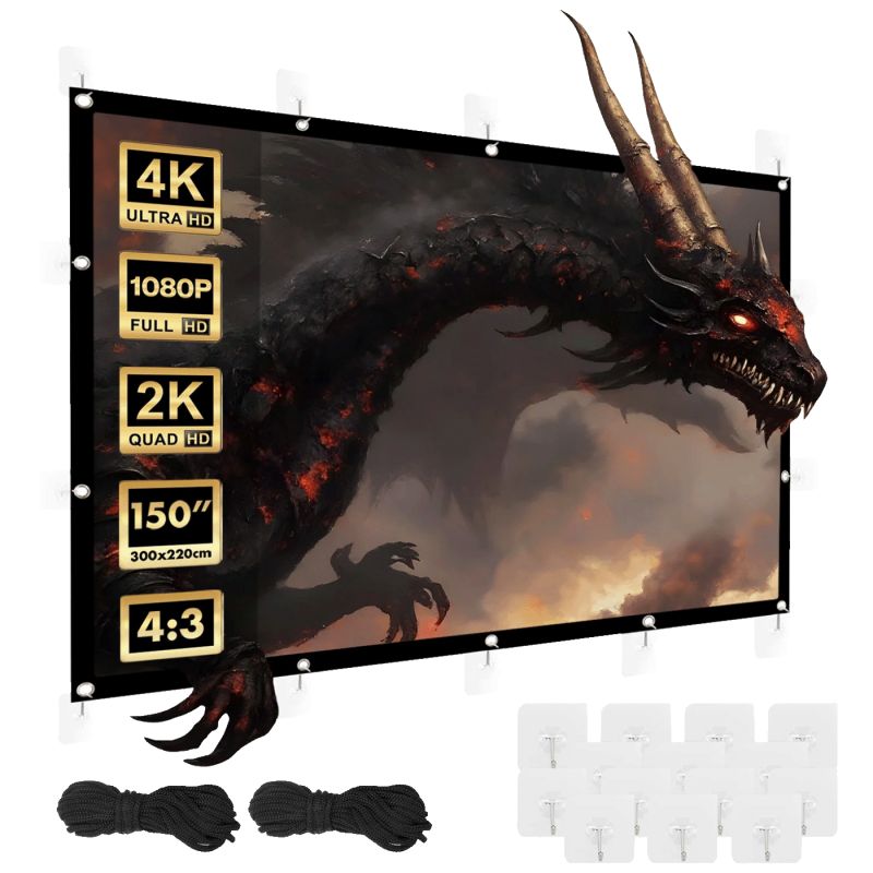 Zaslon impresivne dijagonale od 150" (330 x 220 cm) prijedlog je za zahtjevne korisnike. Dizajniran za velike dvorane, događaje, vrhunska kućna kina ili prezentacije pred širokom publikom. Ova veličina nudi ne samo spektakularnu vidljivost, već i izvrsno impresivno iskustvo - čak i s velikom publikom. Idealan je tamo gdje je "wow" efekt važan.