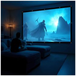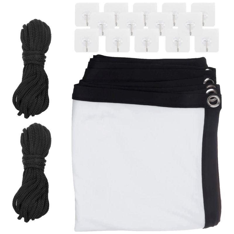 Zaslon je dizajniran za maksimalnu jednostavnost korištenja. Ugradnja je izuzetno jednostavna i brza - samo objesite platno na priložene ljepljive kuke ili ga pričvrstite kablovima. Zahvaljujući ovoj fleksibilnosti ugradnje, platno je idealno za korištenje kod kuće, kao i u uredu, konferencijskoj sali, školi ili čak i na sajmovima na otvorenom.