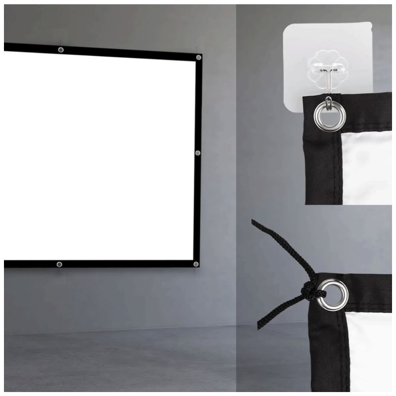Zaslon je dizajniran za maksimalnu jednostavnost korištenja. Ugradnja je izuzetno jednostavna i brza - samo objesite platno na priložene ljepljive kuke ili ga pričvrstite kablovima. Zahvaljujući ovoj fleksibilnosti ugradnje, platno je idealno za korištenje kod kuće, kao i u uredu, konferencijskoj sali, školi ili čak i na sajmovima na otvorenom.