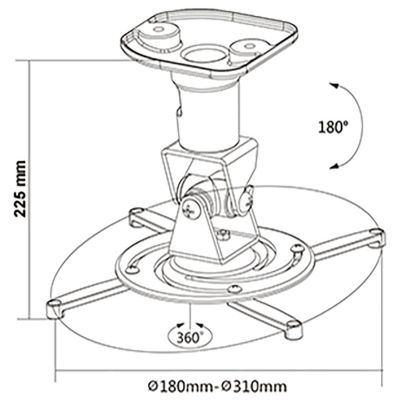 Nosač za projektor, maksimalna nosivot 15 kg, nagib do 180°, udaljenost od stropa 225 mm, zakretanje 360°, kable management, pribor za montažu