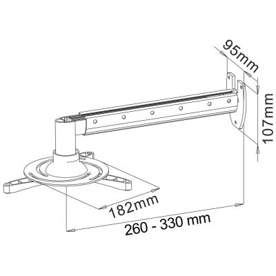 Nosač za projektor, maksimalna nosivot 15 kg, kuglični zglob za podesiv nagib 20°, podesiva udaljenost od zida 260 - 335 mm, kanal za kabel, pribor za montažu
