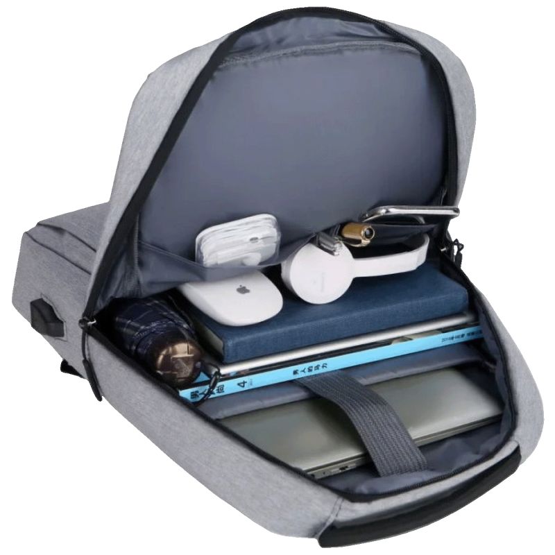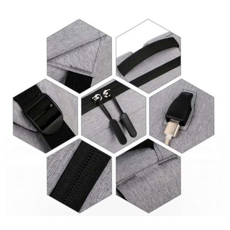 Ruksak ima jedan glavni prostor za laptop i dodatne prednje džepove s rajsferšlusom, kao i bočni džep za sitne stvari. Naramenice su jastučićima obložene radi udobnijeg nošenja tokom dužeg korištenja, a cjelokupna konstrukcija je lagana, čineći ga pogodnim za svakodnevno poslovno ili studentsko korištenje.