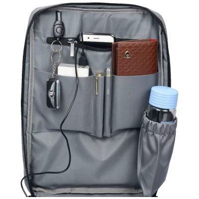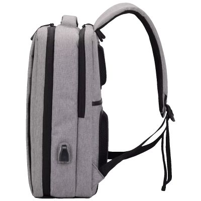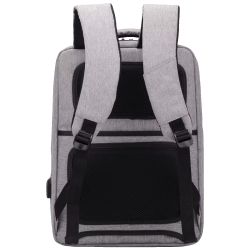 Ruksak posjeduje poseban pretinac za laptop, kao i dodatne unutrašnje i vanjske džepove za dokumente, pribor, punjače i ostale sitnice. Ugrađeni USB konektor omogućava praktično punjenje mobilnih uređaja u pokretu (uz powerbank). Izrađen je od izdržljivog poliestera, a ojačani leđni dio i naramenice pružaju udobnost pri nošenju i smanjuju opterećenje tokom dužeg korištenja.