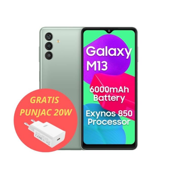 Kada je u pitanju kamera, Samsung Galaxy M13 ima zadnju kameru od 50 MP, te prednju kameru od 8 MP, koja omogućava izuzetno kvalitetne fotografije i video zapise.