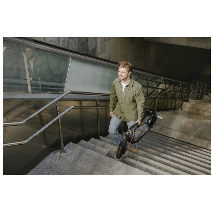 Ninebot KickScooter F2 Plus by Segway savršen je suputnik za svakodnevnu vožnju zahvaljujući velikom dometu do 55 km i maksimalnoj snazi od 800 W. F2 Plus pun je novih značajki s odličnim omjerom cijene i performansi i nudi vam sve što trebate. Dvostruki sustav kočenja, ugrađeni pokazivači smjera, sustav kontrole proklizavanja (TCS), poboljšane gume koje se same obnavljaju, visoke performanse i zahvaljujući integriranoj funkciji Apple Find My, znat ćete gdje je. Ovo će također učiniti vaše putovanje sigurnim i zabavnim.