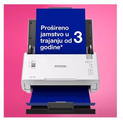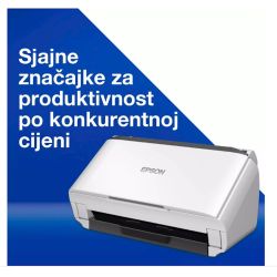 Skener WorkForce DS-410 pruža iznimnu produktivnost po cijeni uređaja iz nižeg ranga. To ga čini idealnim za male i kućne urede te korisnike koji traže poslovni skener bogato opremljen funkcijama, kao i IT odjele koji žele uložiti u robusne, svestrane stolne skenere za svoje tvrtke. DS-410 donosi niz neprocjenjivih značajki za produktivnost, uključujući otkrivanje dvostrukog umetanja i tehnologiju zaštite papira, koje vam jamče zaštitu izvornih dokumenata i skeniranje svake stranice. Skup naprednih LED senzora otkriva istovremeno uvlačenje dvaju komada papira, trenutačno zaustavlja stroj i upozorava korisnika. Za to vrijeme funkcija zaštite papira pomaže u sprečavanju nepravilnog umetanja i oštećenja automatskim zaustavljanjem u slučaju kada uređaj otkrije zaklamane ili neravno postavljene