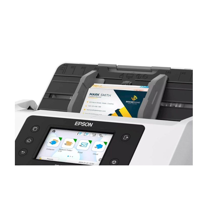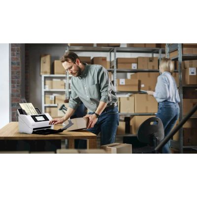 WorkForce DS-800W je poslovni skener prilagoden korisnicima koji nudi sveobuhvatno rješenje za ucinkovito, pouzdano, sigurno i jednostavno skeniranje dokumenata. Zahvaljujuci naprednim znacajkama, besprijekornoj integraciji (s rješenjima trecih strana) i intuitivnom sucelju, DS-800WN je idealan za tvrtke svih velicina. Takoder se proizvodi od 30% reciklirane plastike1 i ima nisku potrošnju struje. DS-800WN brzo i sigurno obraduje i digitalizira veliku kolicinu dokumenata. Brzina skeniranja od 50 stranica u minuti / 100 slika u minuti, dnevni radni ciklus od 8000 stranica i opcijska ploca za poravnanje papira, cine ovaj skener idealnim za razlicite industrijske sektore.