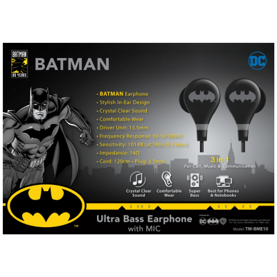 DC Slušalice sa mikrofonom, Batman, 3.5 mm - BATMAN Ultra Bass Earphone with Mic