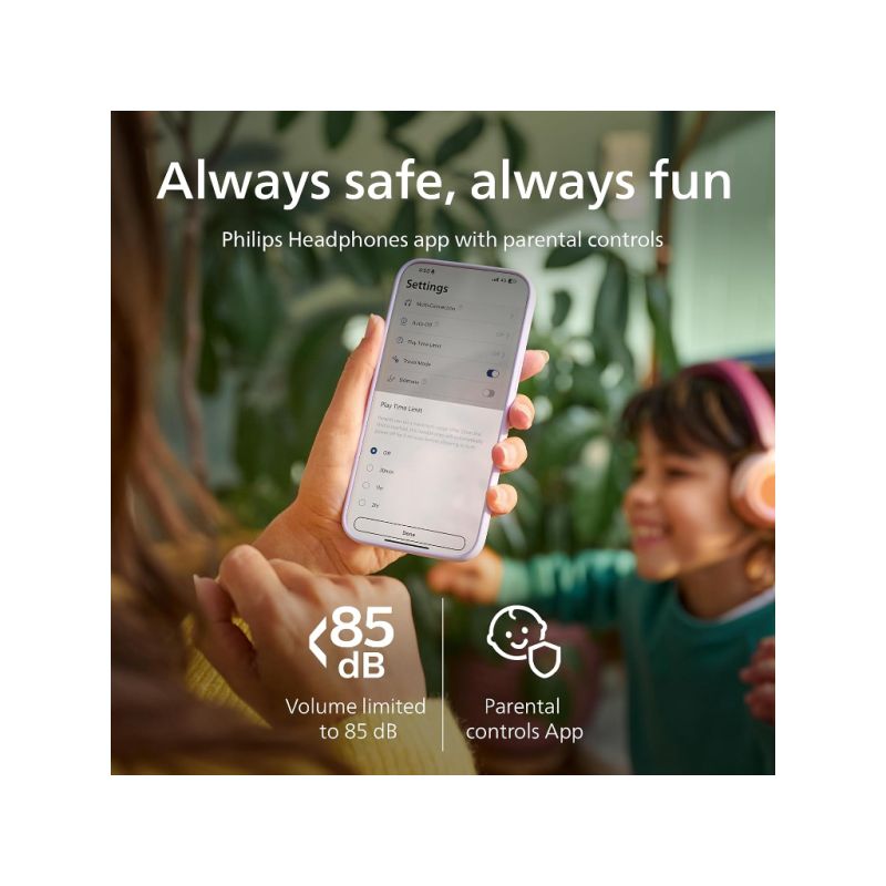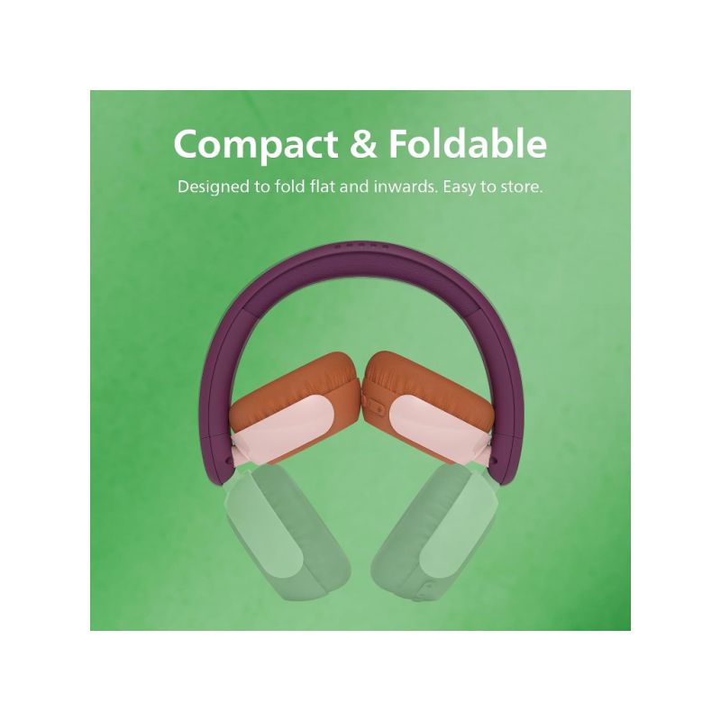 Philips TAK4200 djecije slušalice; Bežične sluš. koje se stavljaju na uši; Glasnoća ograničena na 85 dB; LED svjetla. Dijeljenje zvuka; Izdržljive i preklopive; Aplikacija za slušalice tvrtke Philips s roditeljskim nadzorom; do 45 sati reprodukcije;