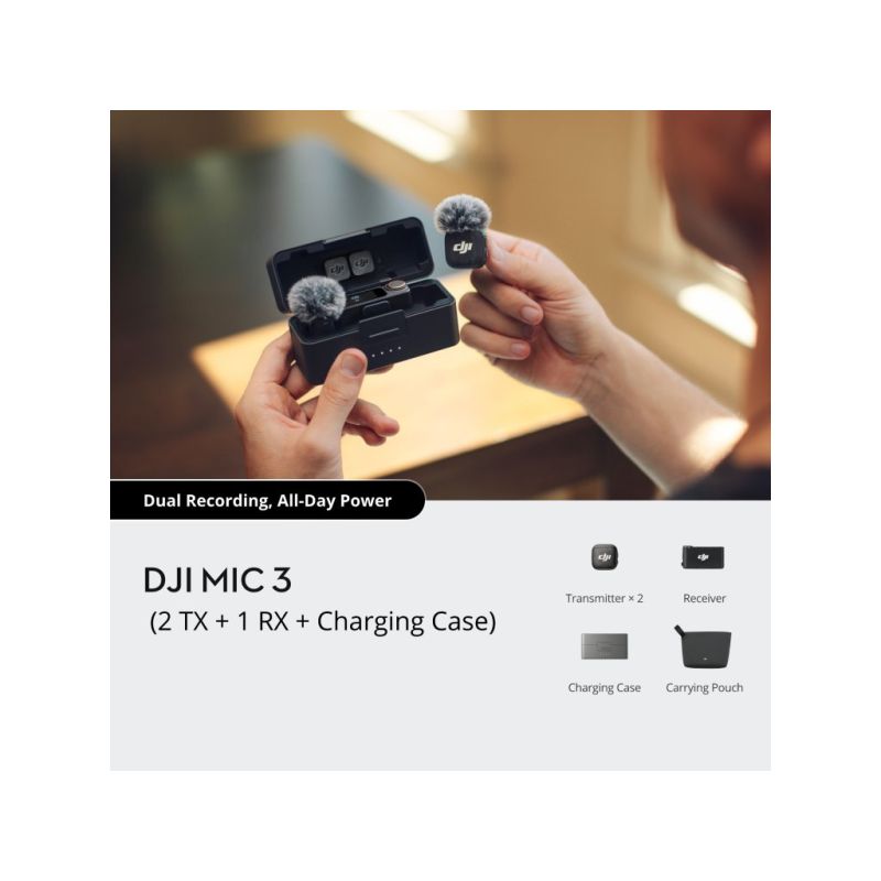 DJI Mic 3 (2TX+1RX+CC)mikrofon, prenos zvuka do 250m5.5h snimanja,48kHz 24 zvuk,OLED zaslon