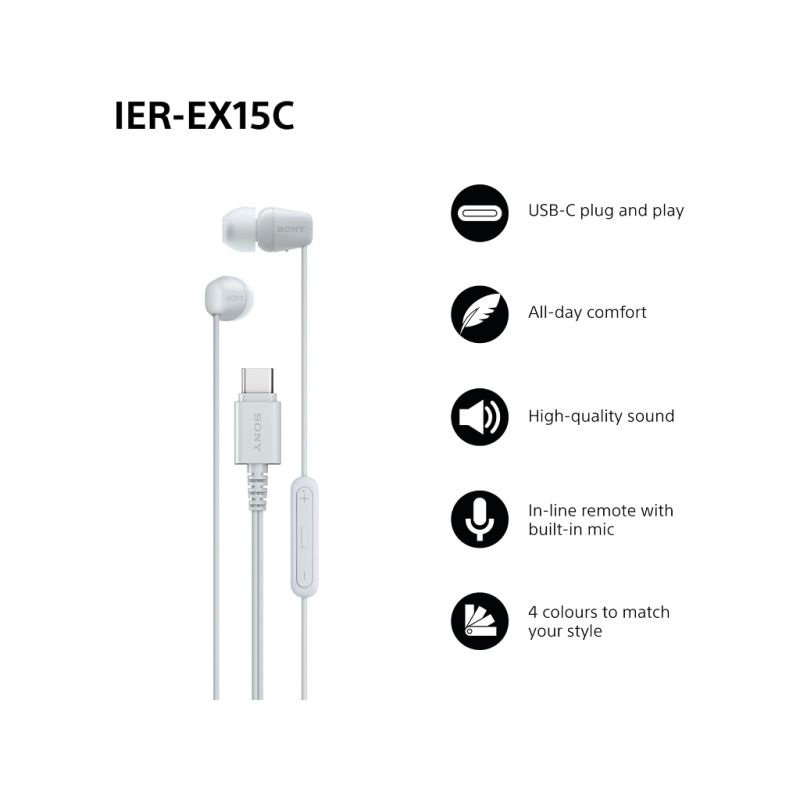 Sony In ear žične slušalice, USB-C, Androis/iOS kompatibilne, 5mm drajveri za snažan bas, mikrofon višesmjerni, daljinska kontrola, glasovni asistent, kabl 1.2m, XS/M/XL silikonski umetci, boja bijela