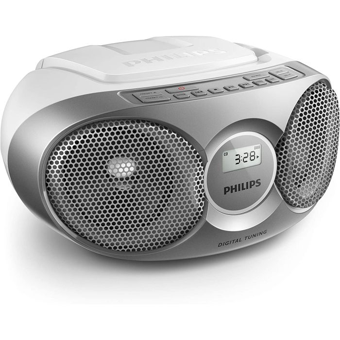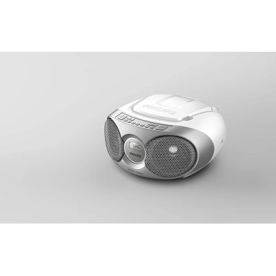 Philips CD Soundmachine; CD; CD-R; CD-RW; FM Antena; Automatsko digitalno podesavanje; stereo; izlazna snaga (RMS) 3W; 2 zvucnika;audio ulaz (3,5mm); napajanje AC ili baterija; boja siva