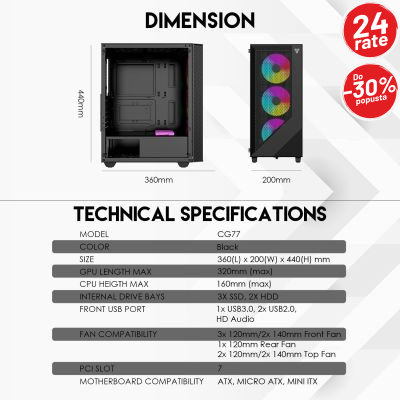 Kompatibilan sa matičnim pločama: ATX, Micro ATX, Mini ATX