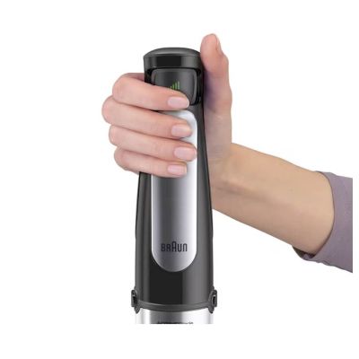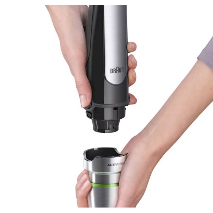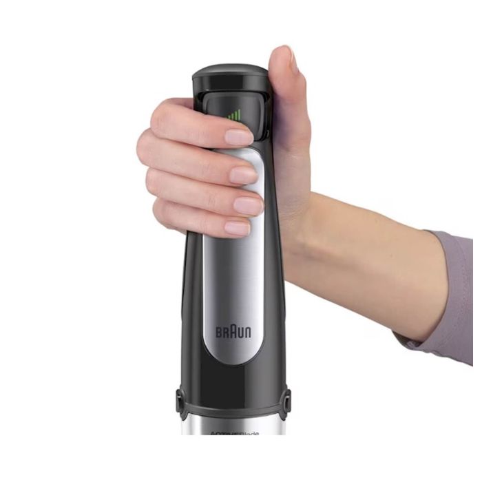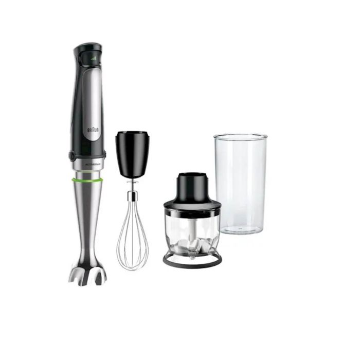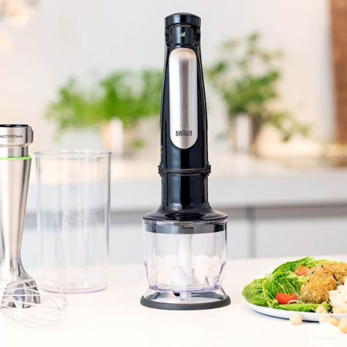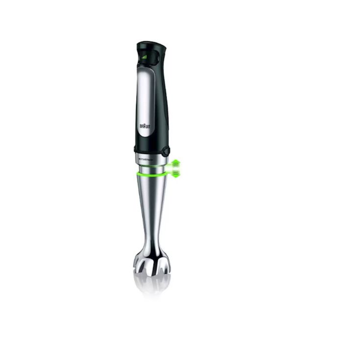 SADRŽAJ Novi Braun MultiQuick 7 rucni blender je dizajniran da vam pomogne da napravite zdrave obroke za svoju porodicu i prijatelje – brzo i jednostavno. Sada ima prvu ACTIVEBlade tehnologiju na svijetu. Ova inovativna fleksibilna osovina daje vam 250 % aktivniju reznu površinu za rad – pametan kuhinjski pomocnik tako da možete lako obaviti posao. Takode poseduje Braunovu novu Easy SmartSpeed ??tehnologiju, koja vam daje kontrolu sa samo jednim dodirom. Jednostavno pritisnite kontrolno dugme da biste intuitivno i bez prekida podesili snagu.