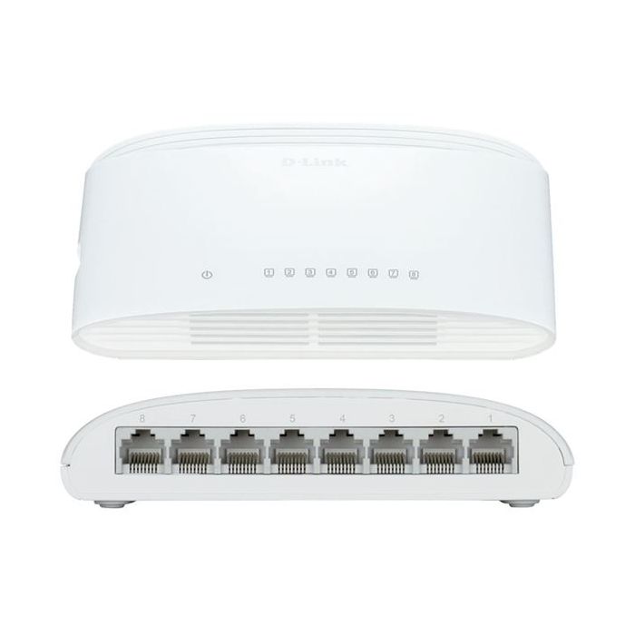 DGS-1008D je SOHO neupravljivi gigabitni preklopnik, namjenjen manjim mrežama i radnim grupama. Osam 10/100/1000Mbps portova posjeduju svojstvo automatske detekcije UTP kabela, omogućavajući rad uz korištenje straight-through ili crossover kabela. Uz to, preklopnik testira ispravnost kabela, signalizirajući mogući prekid. Malih je dimenzija, nečujan i jednostavan za korištenje. Napaja se vanjskim naponskim ispravljačem. Montaža može biti zidna ili stolna.