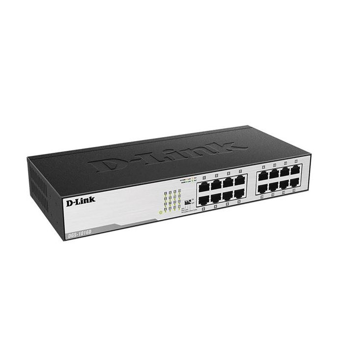 DGS-1016D je SOHO neupravljivi preklopnik, metalnog kućišta , namjenjen manjim mrežama i radnim grupama.nbsp;gigabitnih E thernet portova posjeduju svojstvo automatske detekcije UTP kabela, omogućavajući rad uz korištenje straight-through ili crossover kabela. Uz to, preklopnik testira ispravnost kabela, signalizirajući mogući prekid. Koristi interno napajanje, hladi se dvama bočno ugrađenim ventilatorima. Montaža može biti zidna ili stolna. Zbog desktop dimenzija koriste se duži metalni nosači pri ugradnji u 19" komunikacijski ormar.