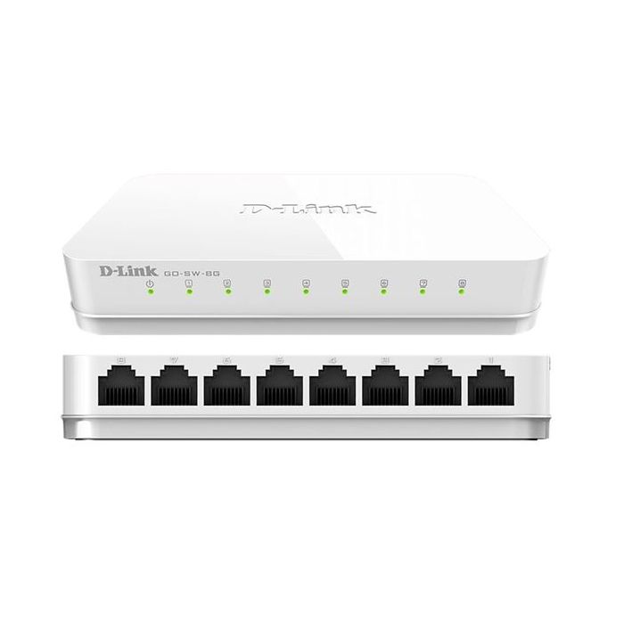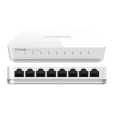 GO-SW-8G/E je SOHO neupravljivi gigabitni preklopnik, namjenjen manjim mrežama i radnim grupama. Osam 10/100/1000 Mbps portova posjeduju svojstvo automatske detekcije UTP kabela, omogućavajući rad uz korištenje straight-through ili crossover kabela. Automatskim gašenjem portova koji nisu u upotrebi štedi energiju (D-Link Green Technology). Malih je dimenzija, nečujan i jednostavan za korištenje. Napaja se vanjskim naponskim ispravljačem.