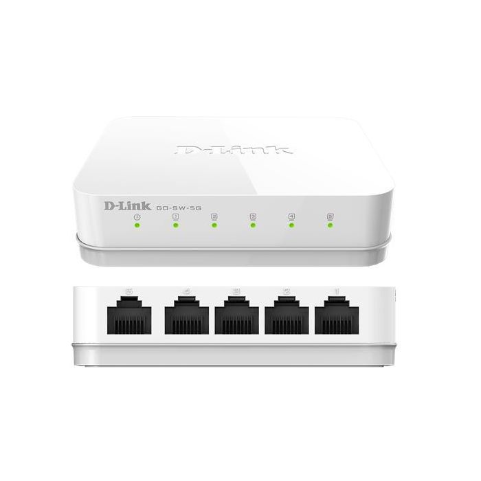 GO-SW-5G/E je SOHO neupravljivi gigabitni preklopnik, namjenjen manjim mrežama i radnim grupama. Pet 10/100/1000 Mbps portova posjeduju svojstvo automatske detekcije UTP kabela, omogućavajući rad uz korištenje straight-through ili crossover kabela. Automatskim gašenjem portova koji nisu u upotrebi štedi energiju (D-Link Green Technology,). Malih je dimenzija, nečujan i jednostavan za korištenje. Napaja se vanjskim naponskim ispravljačem.