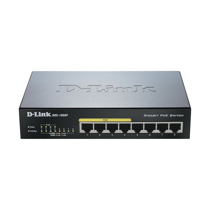 DGS-1008P je SOHO neupravljivi gigabitni preklopnik, namjenjen manjim mrežama i radnim grupama. Osam 10/100/1000Mbps portova od kojih je 4 PoE porta, posjeduju svojstvo automatske detekcije UTP kabela, omogućavajući rad uz korištenje straight-through ili crossover kabela. Uz to, preklopnik testira ispravnost kabela, signalizirajući mogući prekid. Malih je dimenzija, nečujan i jednostavan za korištenje. Napaja se vanjskim naponskim ispravljačem. Montaža može biti zidna ili stolna.