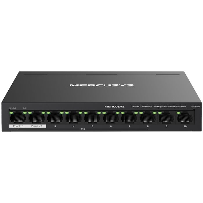 10-Port 10/100Mbps Desktop Switch with 8-Port PoE+PORT: 8× 10/100 Mbps PoE+ Ports, 2× 10/100 Mbps Non-PoE PortsSPEC: Compatible