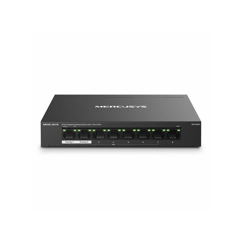 Mercusys MS108GP 8-Port Gigabit Desktop Switch with 7-Port PoE+, 7× Gigabit PoE+ Ports, 1× Gigabit Non-PoE Ports, Compatible wit