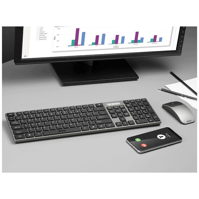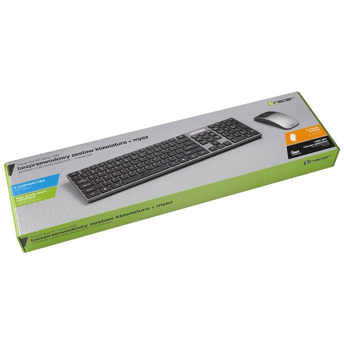 Besprijekorno povezivanje s računalima ili prijenosnim računalima pomoću bežične veze - bežična 2,4 GHz tehnologija. Set je vrlo jednostavan za spajanje – sve što trebate učiniti je spojiti mali nano-prijemnik na USB sučelje u vašem računalu ili laptopu i možete uživati u brzom i pouzdanom radu svojih uređaja. Tracer tipkovnica i miš mogu se postaviti do 10 metara od nano-prijemnika; otkrijte slobodu koju pruža samo korištenje bežičnog seta.