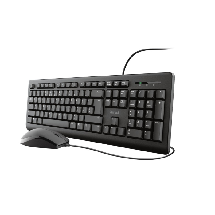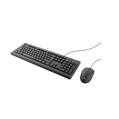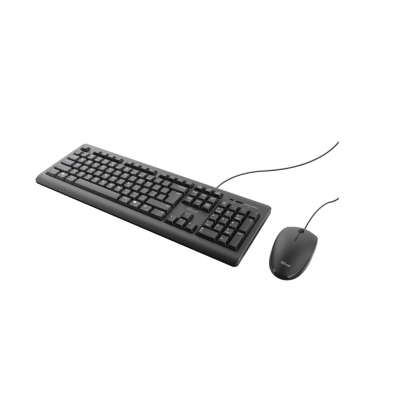 Trust Primo set tastatura+miš. Office set, tastatura spill-resistant, low-profile tipke, BH/HR/SRB layout, dužina kabla 1.80m. Ergonomski miš, dizajnom prilagođen za obje ruke. USB veza 2.0.