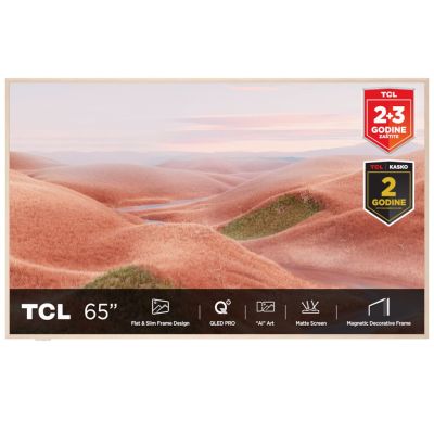 TCL 65"A300W NXTVISION 4K QLED; Google OS; 144Hz VRR ART TV; Dolby Atmos; Ambient mode; HDMI 2.1;Flat & Slim Frame Design; Movable Floor Stand; "Ai" Art; Matte Screen; HDR10+, HDR10, HLG; AiPQ Pro Processor; TCL Home Google Home Apple Home Alexa;