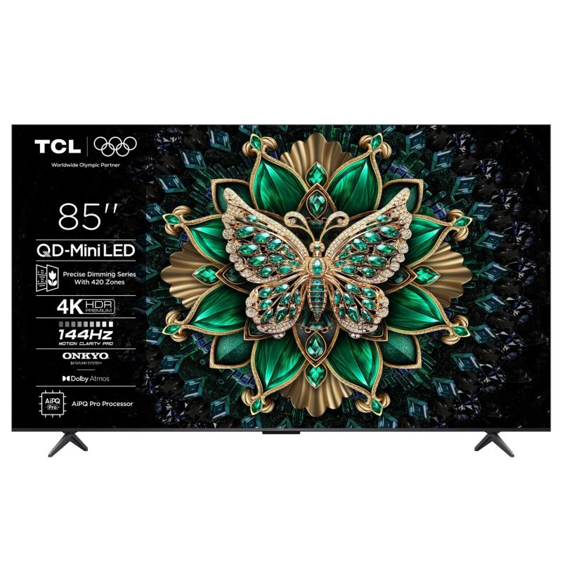 TCL 85"C6K 4K QD-Mini LED TV; 144Hz native display; Matte HVA Panel; Google TV; Game Master; Dolby Atmos; Onkyo 2.1; HDR Premium; HDR10+ HDR10 HLG; Netflix Youtube Amazon Prime Apple TV; Chromecast & T-cast; HDMI: 4x 2.1; USB: 1x 3.0;