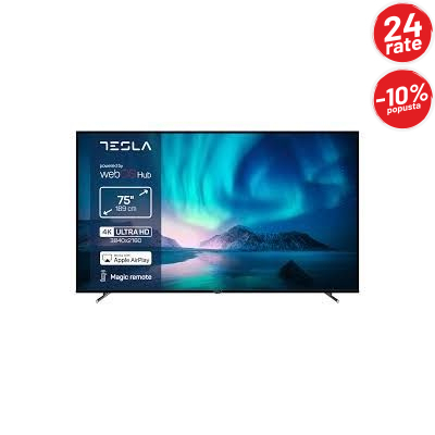 TESLA TV 75E645BUW 4K WebOS,2X12W box zvucnici;Miracast;Airply;Netflix,Prime video,Web browser,Content store,MAX,Disney +,EON,Orion TV,Deezer,Arena cloud-Magicni daljinski