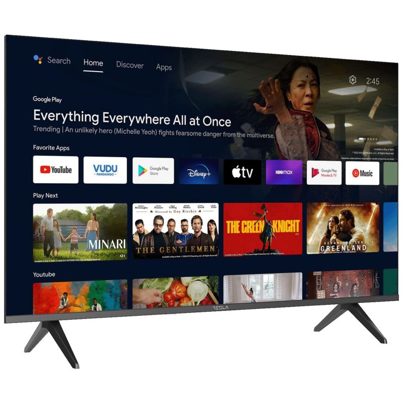 Ekran televizora nudi rezoluciju 1920 x 1080 (Full HD) i dinamički kontrast 5000:1 što omogućava jasnu sliku s dobrim prikazom detalja. Ugrađen je certificirani Android TV 11, što znači da imate pristup već ugrađenim aplikacijama kao što su Netflix, Prime Video i YouTube, ali i mogućnost preuzimanja više od 4000 dodatnih aplikacija putem Google Play trgovine. Daljinski upravljač s Bluetooth vezom omogućuje glasovno upravljanje televizorom – nije potrebno precizno usmjeravanje prema uređaju. Ugrađen Google Assistant i funkcija Chromecast omogućuju jednostavno prebacivanje sadržaja sa pametnih uređaja na televizor.