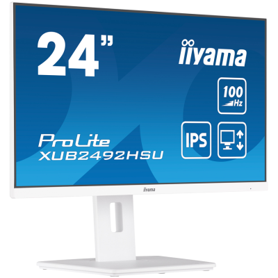 IIYAMA Monitor LED XUB2492HSU-W6 WHITE 23.8" IPS 1920 x 1080 @100Hz 16:9 250 cd/m² 1300:1 0.4ms HDMI DP USB 4 x 3.2 Full Ergono
