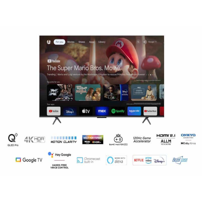 TCL 65"C655 4K QLED TV; QLED PRO; 4K HDR PRO; Motion Clarity 120HZ pro; Multi HDR format, Dolby Vision & HDR10+; Game Master 3.0; HDMI 2.1; 2.0 ONKYO Dolby Atmos; Google TV; Hands-free Google Assistant; Miracast & Chromecast; Bezel less slim metal