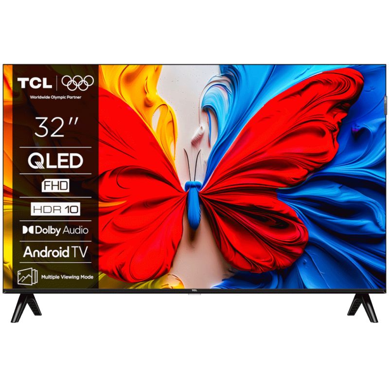 TCL 32"S5K FHD QLED TV;60 Hz HDR 10 Android TV Dolby Digital Plus; HDR 10: Netflix USB 1080p; Android TV (ATV 11.0) Google Play Store; Chromecast & T-cast; HDMI 2x 1.4 USB 1x 2.0; Multiple Viewing Mode; Metallic Bezel-less; Brushed metal front