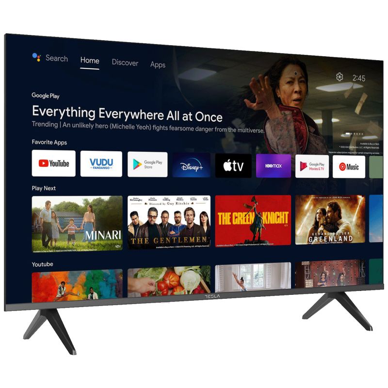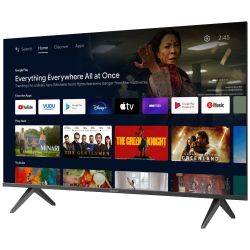 Ekran televizora nudi rezoluciju 1920 x 1080 (Full HD) i dinamički kontrast 5000:1 što omogućava jasnu sliku s dobrim prikazom detalja. Ugrađen je certificirani Android TV 11, što znači da imate pristup već ugrađenim aplikacijama kao što su Netflix, Prime Video i YouTube, ali i mogućnost preuzimanja više od 4000 dodatnih aplikacija putem Google Play trgovine. Daljinski upravljač s Bluetooth vezom omogućuje glasovno upravljanje televizorom – nije potrebno precizno usmjeravanje prema uređaju. Ugrađen Google Assistant i funkcija Chromecast omogućuju jednostavno prebacivanje sadržaja sa pametnih uređaja na televizor.