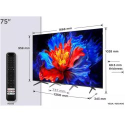 TCL 75"P8K 4K QLED TV 144Hz native display;Google TV; Motion Clarity Pro; Game Master; Onkyo 2.1; Dolby Vision, HDR10+, HDR10, HLG; AiPQ Pro Processor; Netflix Youtube Amazon Prime Apple TV; Chromecast & T-cast; HDMI: 4x 2.1; USB: 1x 3.0