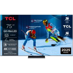 TCL 75"C8K 4K QD-Mini LED TV; 144Hz Google TV; ZeroBorder; Audio BANG & OLUFSEN; HDR Premium 5000; CrystGlow WHVA Panel; Motion Clarity Pro; HDR10+ HDR10 HLG; Netflix Youtube Amazon Prime Apple TV; Chromecast & T-cast; HDMI: 4x 2.1; USB: 1x 3.0;