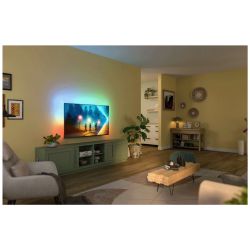 Philips 55PUS8200/12 je 55-inčni 4K Ultra HD LED televizor s jedinstvenom Ambilight tehnologijom koja emitira boje na zid iza ekrana te tako pojačava doživljaj gledanja. Ambilight je 3-stran, s režimima za glazbu, igre i čak “sunrise alarm”, a može se prilagoditi boji zida. Televizor koristi Pixel Precise Ultra HD obradu slike za oštru, realističnu sliku uz Crystal Clear i Micro Dimming funkcije te je kompatibilan s HDR10+ za širi dinamički raspon boja i kontrasta. Smart TV pokreće TITAN OS s aplikacijama kao što su Netflix, Disney+ i YouTube, a ugrađena je i podrška za Amazon Alexa, Google Home i Apple AirPlay za integraciju s pametnim domom. Zvuk obogaćuju Dolby Atmos i DTS:X tehnologije za surround doživljaj bez dodatnih zvučnika.