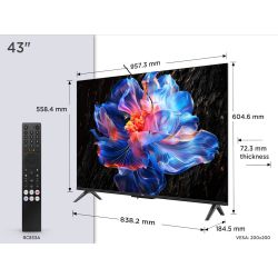 TCL 43V6C 4K TV Google OS; HDR10 HLG; HVA Panel; Motion Clarity; Dolby Audio; AiPQ Processor; Frameless; Game Master; Dolby 2.0 sound system; Google TV (ATV 12.0); Netflix YouTube Amazon Prime Apple-TV; HDMI 3x2.1; USB 1x 3.0