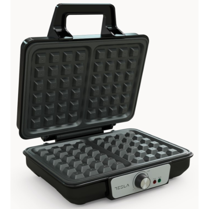 TESLA Waffle Toster WM200BX; Snaga 1000 W; Hladna ručka na dodir; Ploče s neljepljivim premazom za jednostavno čišćenje; Podesivi gumb za kontrolu temp.; Odlaganje: Omotajte kabel i stavite ga uspravno; Svjetlosni indikator spremnosti i napajanja