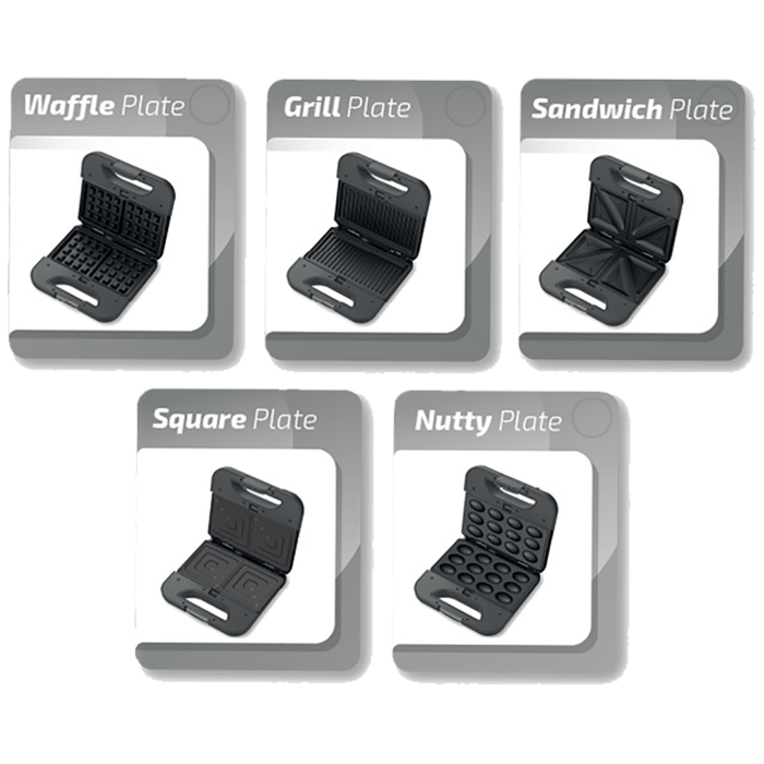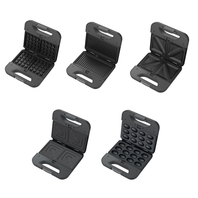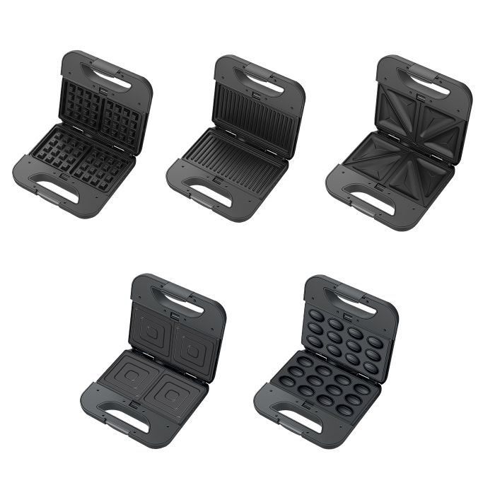 Toster 800 W, 5u1, veličina ploče 21.6 x 12 cm, ploče od nehrđajućeg čelika, 5 različitih ploča, sustav zaključavanja, indikator rada, automatska kontrola temperature, neljepljiva uklonjiva ploča jednostavna za čišćenje, uspravno odlaganje uz uštedu prostora