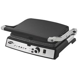 Gril kontaktni, snaga 2000W, uklonjive i neljepljive plate presvučene granitnim premazom, površina za 6 sendiča, okretni gumb za podešavanje temperature u 5 stupnjeva, mogučnost otvaranja tostera za 180°, ručka otporna na toplinu, skladištenje u vertikalnom položaju